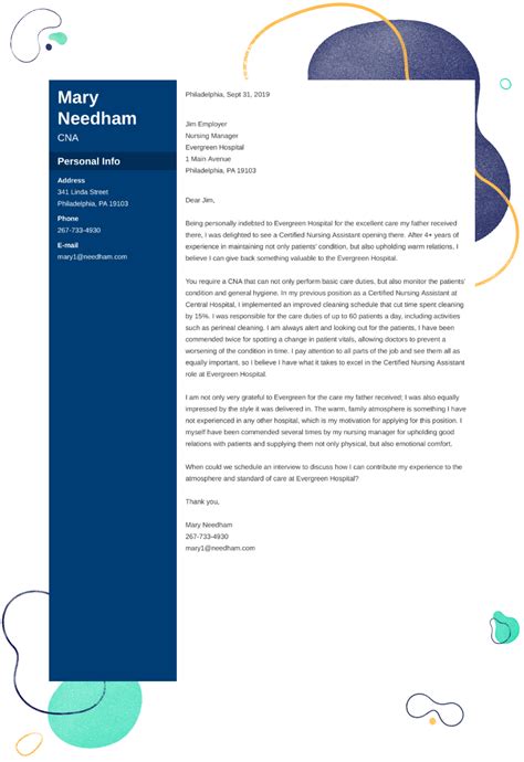 While a CNA cover letter sample template provides a solid foundation, remember to tailor each letter to the specific job description and facility. Generic cover letters are easily identifiable and may be overlooked. Carefully review the job posting and highlight the skills and experiences that directly address the employer's needs. Proofread your cover letter meticulously for any errors in grammar or spelling before submitting it.