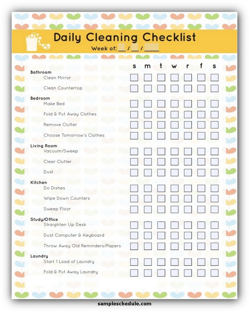 Example Cleaning Schedule Template (Weekly)