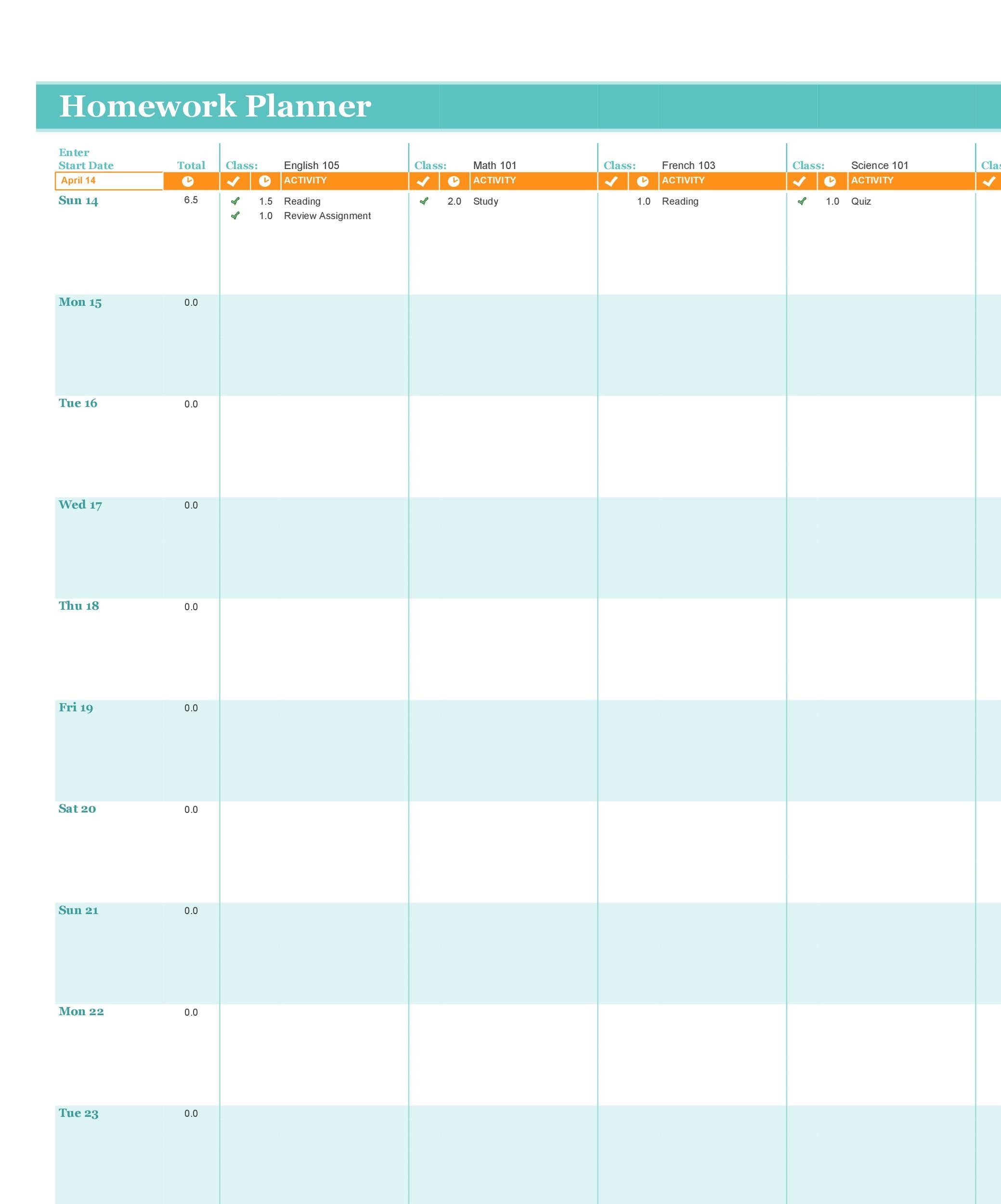 - Weekly Planner: A weekly planner provides a broader overview of assignments and deadlines for the entire week. It allows for more flexibility in scheduling and is suitable for students who prefer a less rigid structure.