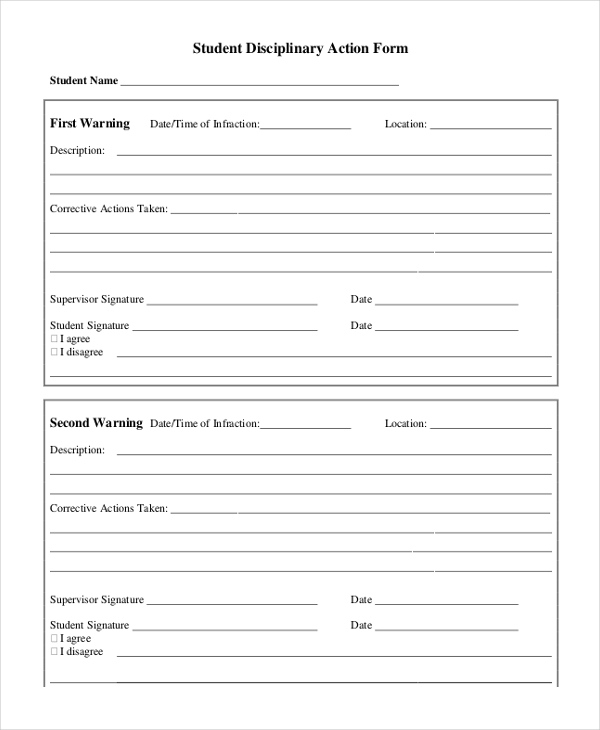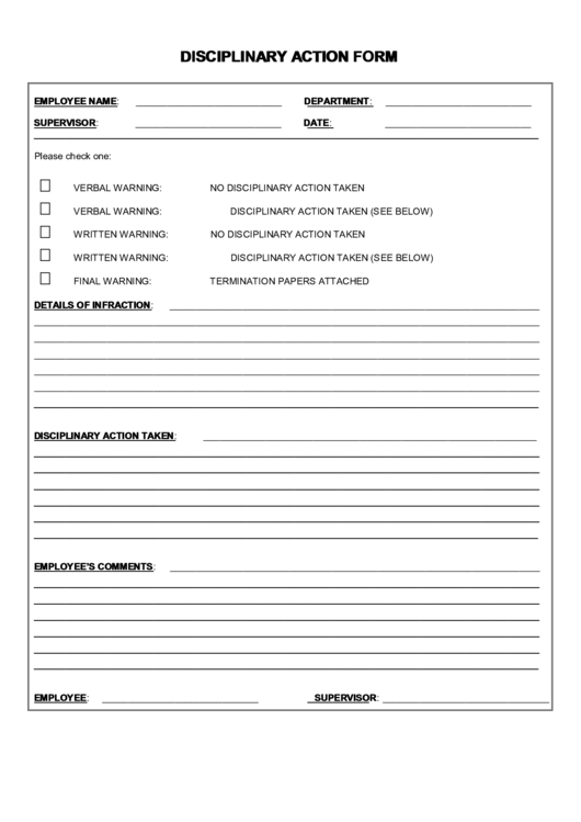 While the specific format may vary, a typical disciplinary action form usually includes the following sections: